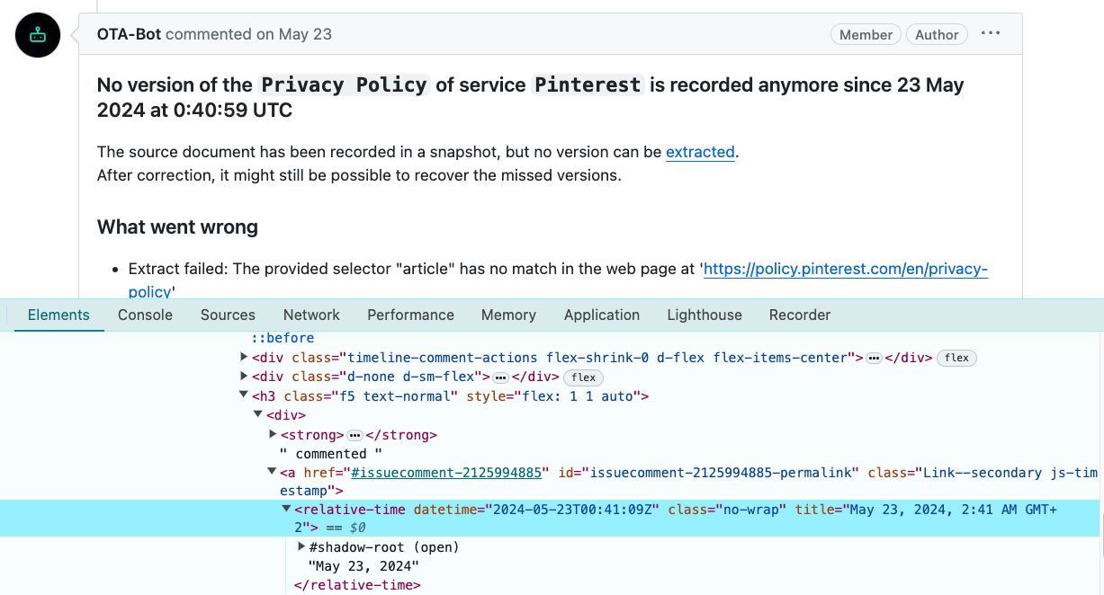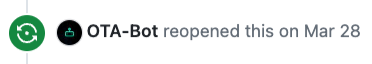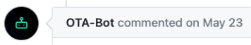 1. Go to the open issue and scroll to the last action from OTA-Bot (comment or issue opening).